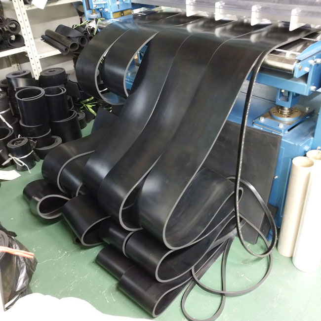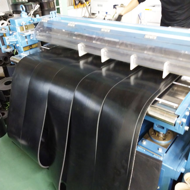 ゴムシートを機械加工で一度に複数枚の幅カット→短納期が可能です