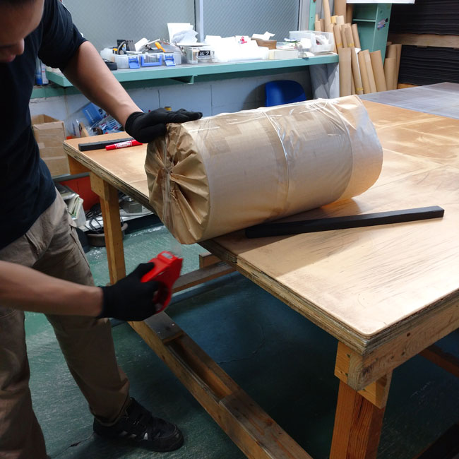 ▽ 幅カット後は梱包して出荷です。