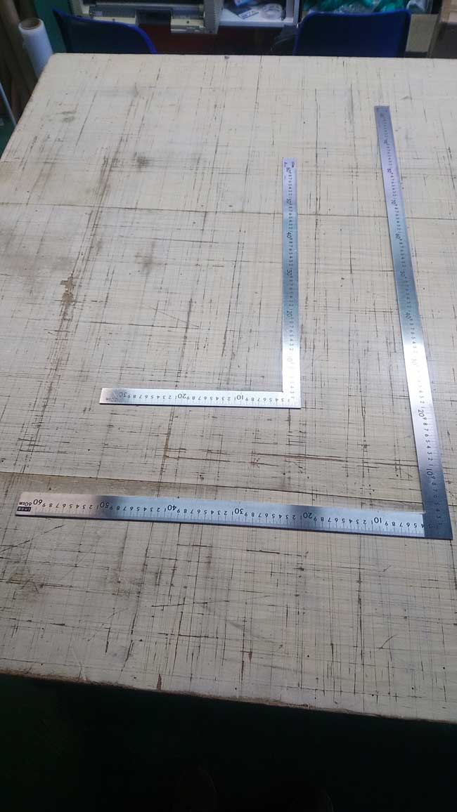 大きさの異なる差し金(直角定規)です