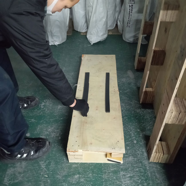 下記の写真は弊社内での使用事例です。パレット出荷の際のゴムシートの転がり止めに使いました。