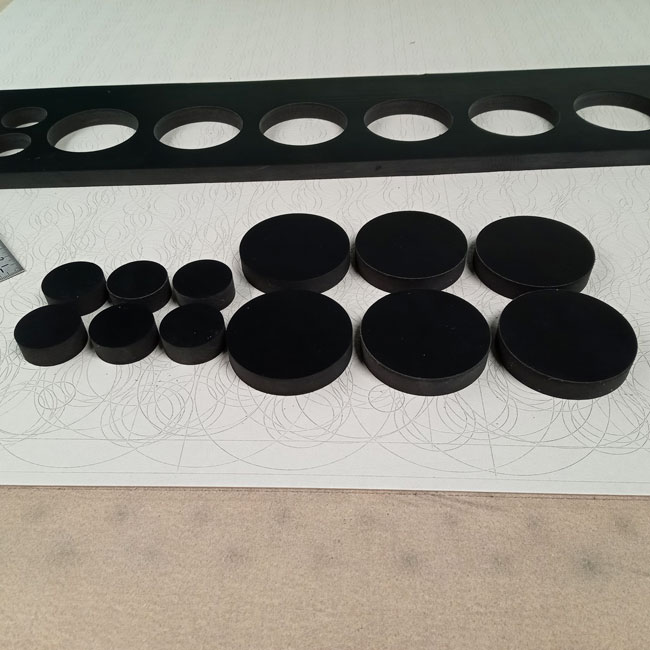 厚物ゴムをラインナップに加えてからたくさんのご注文をいただいてます。主なご用途は嵩上げや段差解消です。今回ご紹介するのは厚さ15mmの小さな円形カットです。直径サイズは小さいですが、厚みがありますのである程度の重量感はあります。