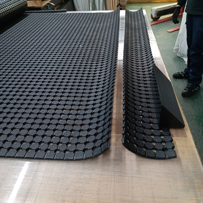 駐車場の泥除けに 穴あきゴムシートがオススメ
