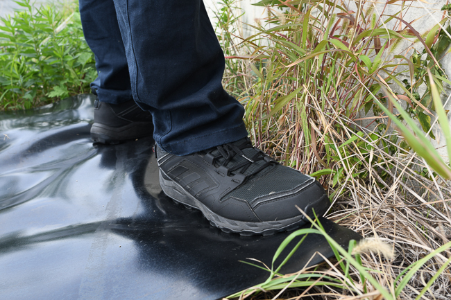 重量があるので、敷くだけで設置完了。杭を打ったり石を乗せる必要もありません。