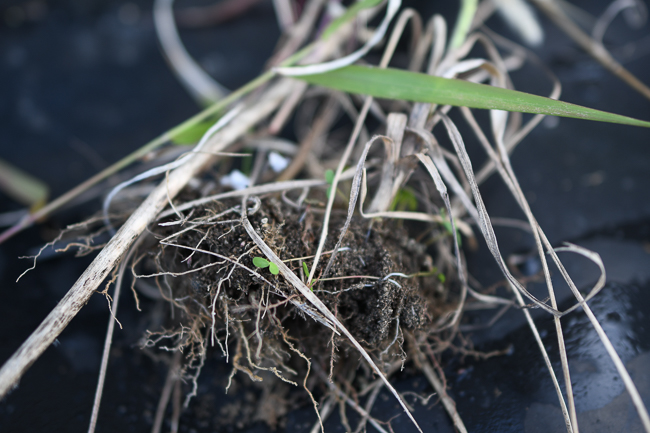 だいたい枯れてますね。気になる場合はもう少し長めに敷いても良いと思いますが、これでも十分抜きやすいので今回はOKとしました。