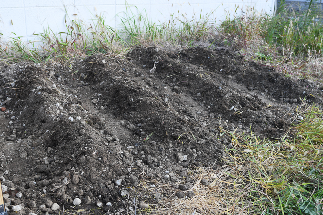 今回は何を植えるか決めていませんが、とりあえず畝(うね)をつくりました。
