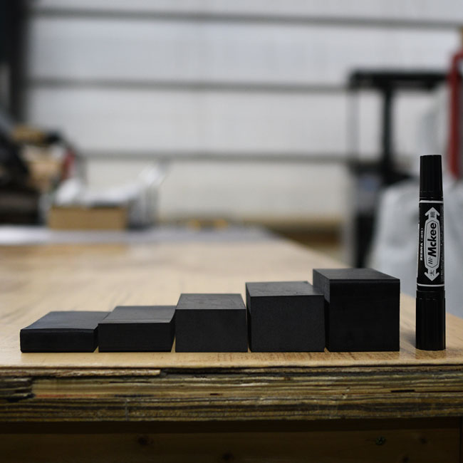 ▽ 30mmと50mmの厚さ比較です。このようなゴムブロックにすることでかさ上げに使いやすくなります。