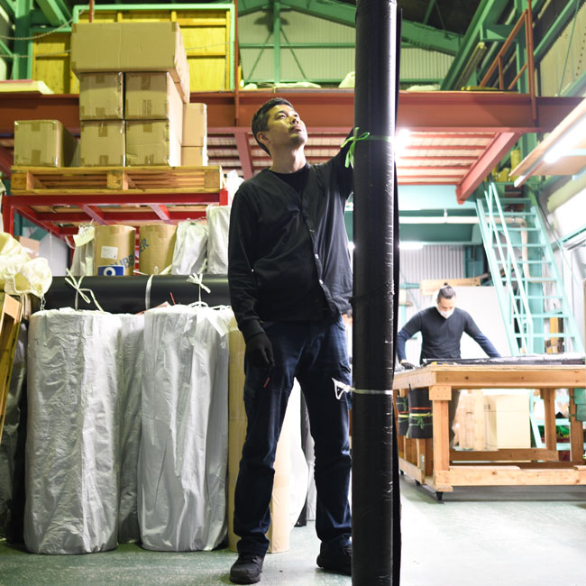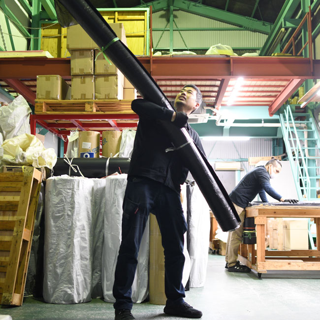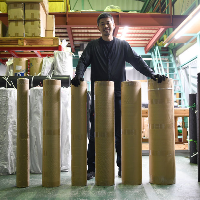 ▽ こちらは幅1Mのゴムシートです。梱包して立てているので写真では高さが1Mです。