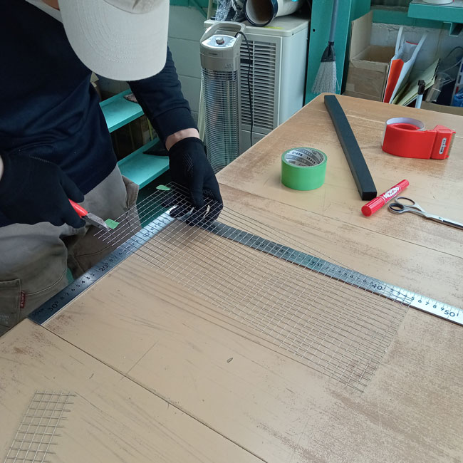 ゴムシート.comではステンレスファインメッシュの寸法切りも行っています。ゴムシートをご注文いただいた方からのご依頼がきっかけで取り扱いをスタートしました。在庫はなく必要寸法を都度仕入れて、細かいカットは自社で行うスタイルです。ゴミ除けなどの各種カバーやネズミなどの侵入を防ぐために使っていただくことが多いです。