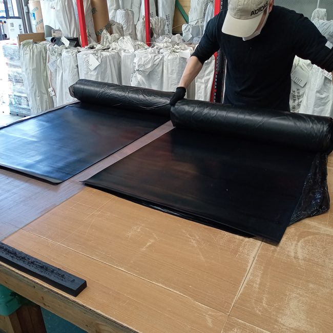 ゴムシートの幅カットはゴムシート.comでは毎日のように行っていますが、幅カットの機械に入れられない大きさのご依頼も承ります。その場合は手作業で幅カットを行います。お客様の現場でも幅カットをされるかもしれませんので、どのようにカットしているかカンタンにご紹介いたします。
