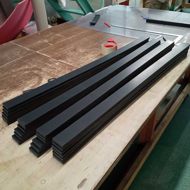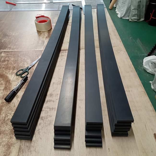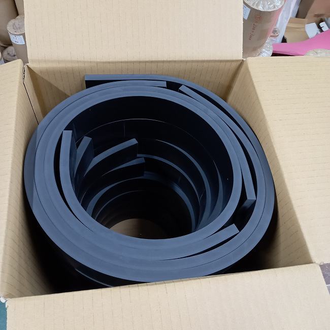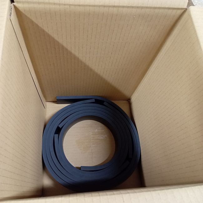 ゴムシートを複雑な形状にカットすることもできますが、細長い形状もゴムシート.comが得意とするカットです。短冊形などと形容することも多いこの形状ですが、お客様が施工現場でカットされるのはとても大変です。見た目のシンプルさでは想像ができないくらいの時間と体力を使うのです。