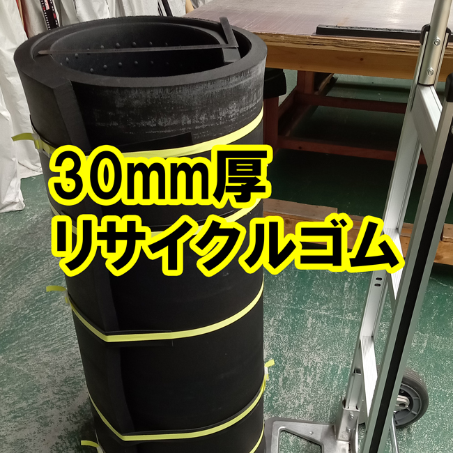 30mm厚は厚物ゴムでもご紹介しましたが、1M×2Mでお使いいただく場合にはリサイクルゴムが最も安価です。ゴムシート.com取り扱い商品でもっとも平方メートル単価が安いのがリサイクルゴムなのです。0.5M×2Mまたは1M×2Mでご注文いただけます。養生ゴムとしてオススメです。
