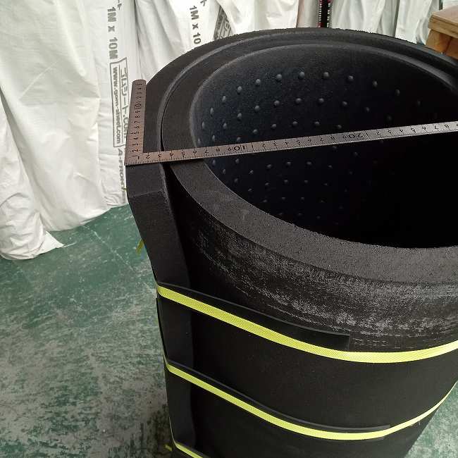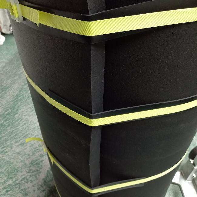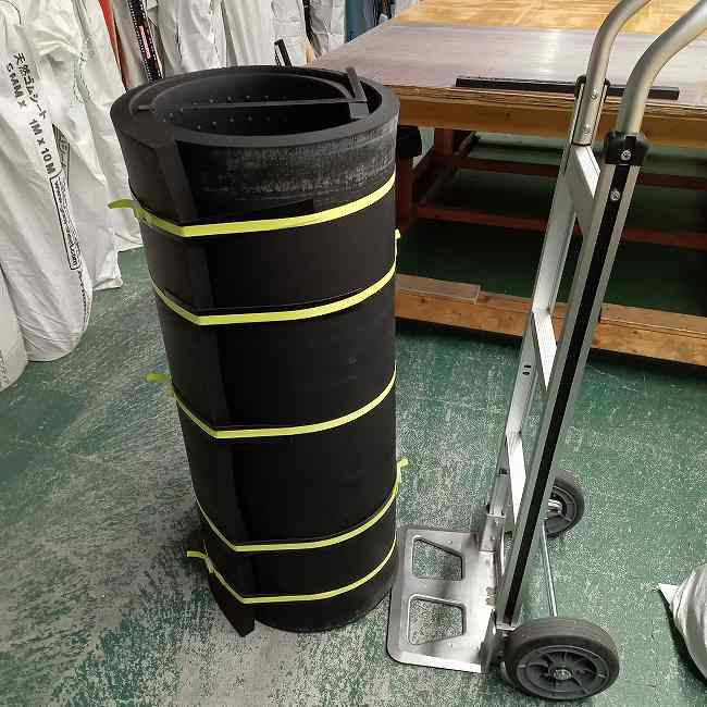 ▽ 30mm厚のリサイクルゴムを巻くとこのようになります。およそ60kgあります。