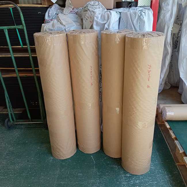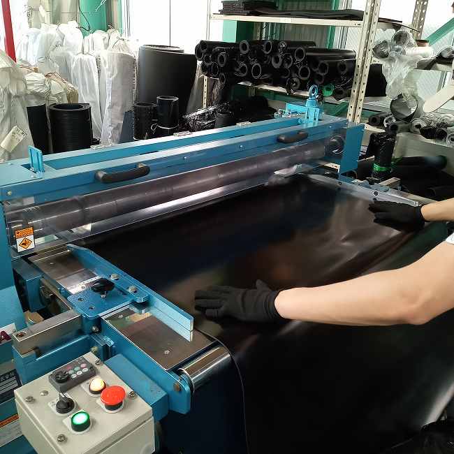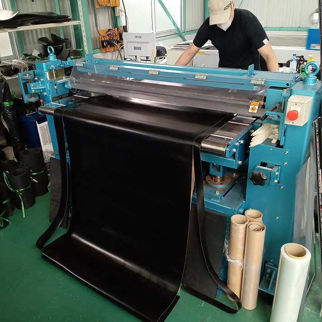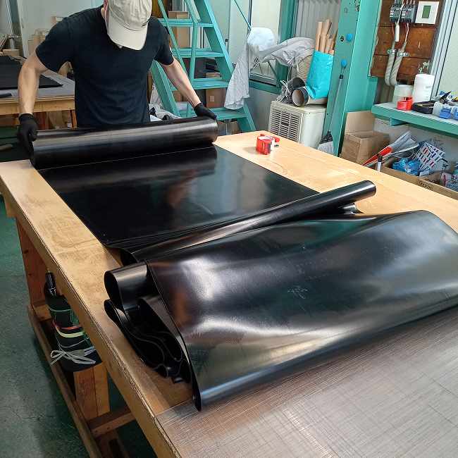 ゴムシートの基本幅は1000mm(1M)ですが、設置場所のご都合で少しカットしないとダメな場合も多いかと思います。例えば、1000mm(1M)幅から900mm(0.9M)幅にしてお届けすることもできます。現場でカットすることもできますが、特に長尺ものの幅カットは大変な労力ですので、ぜひご依頼くださいませ。