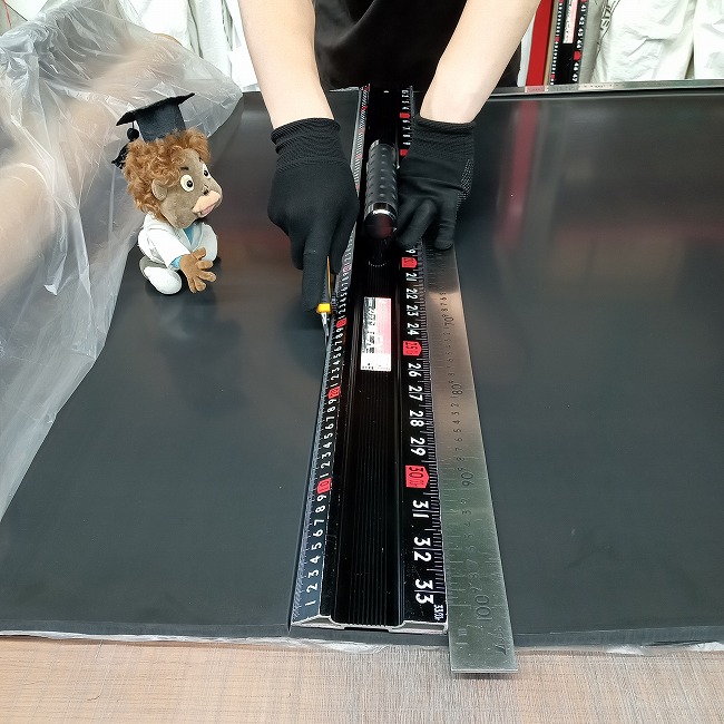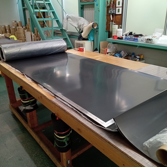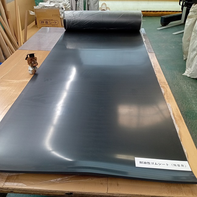 ▽ 耐油性ゴムシートを広げました。厚さ10mmです。