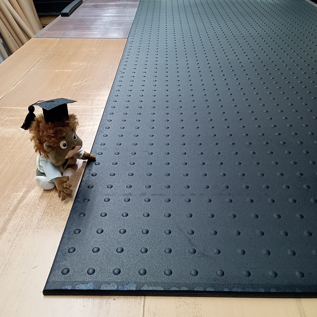工事の養生、製品置き場の養生などに大変人気なリサイクルゴムのご紹介です。なぜリサイクルゴムが人気なのか?理由は安くて丈夫だからです。欠点は長尺品がないことですが、1枚物でなくてもよい現場でしたら全く問題ないと思います。