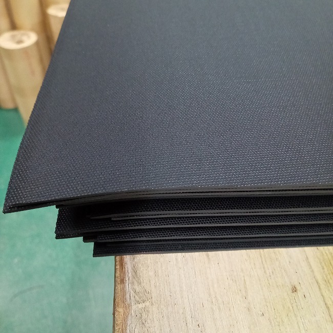 ゴムシート.comが通常在庫している製品です。耐候性に優れた材質で、両面にザラザラ(エンボス)があるため滑り止め効果に優れます。またゴムの大きな特徴としてゴムの臭いがほとんどしません。そのため、室内の利用にも最適なのです。