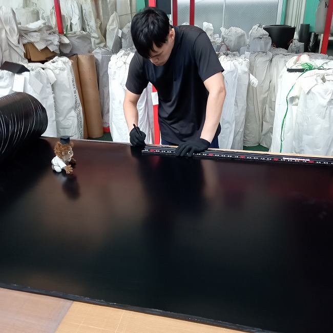 ゴムシート.comの通常ラインナップに補強布入りゴムがあります。通常の天然ゴムに補強材=ナイロンが入っていて、繰り返し負荷のかかる過酷な環境下でも耐久力がある人気の製品です。