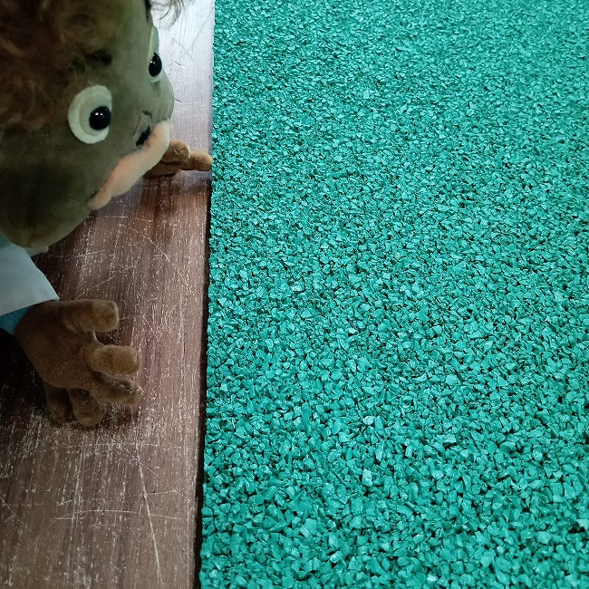 ▽ このようにゴムチップを固めてシートにしています。そのため、若干ザラザラしています。