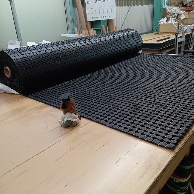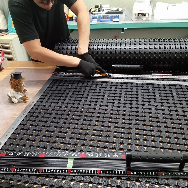 私たちは慣れているうえにゴムシートをカットするために最適化した環境があります。特大サイズをお客様の現場でカットされる場合は想像を超える労力と時間が必要になるかと思います。