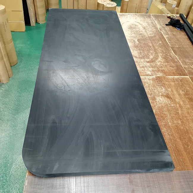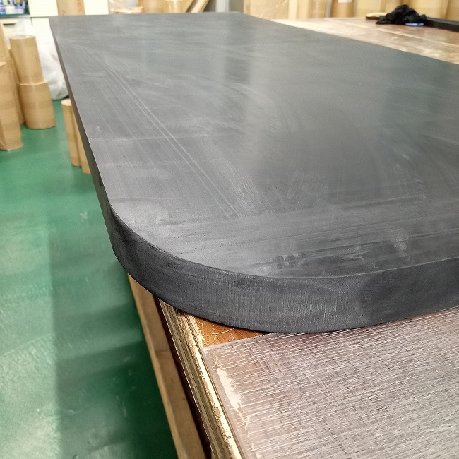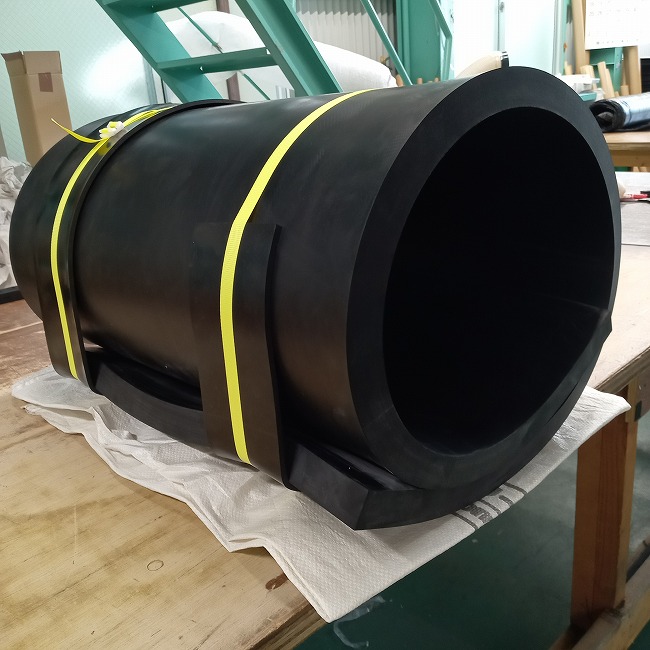 分厚いゴムの角R加工も可能です。厚さ10mmを超えるゴムの角R加工は難易度が高く、納期・単価ともにかなりアップしますが、可能です。設置場所のご都合でどうしても角を丸くしなければならない場合、オーダーカットのお問い合わせをお願いします。
