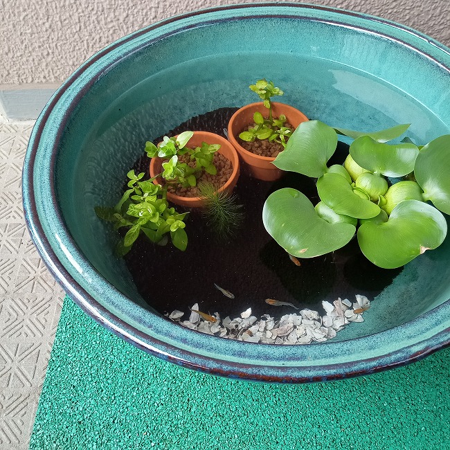 メダカを飼っている睡蓮鉢に安全ふわゴムシートを使ってみました