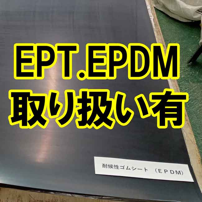 定番商品として掲載はしていませんが、EPT,EPDMゴムシートもごくわずかですが在庫しています。図面に材質指定がある場合など、他の材質ではダメな場合はご連絡くださいませ。在庫があれば他の定番品と同じように即納が可能です。在庫がない場合は取り寄せになりますので、早くて2~3日での出荷です。
