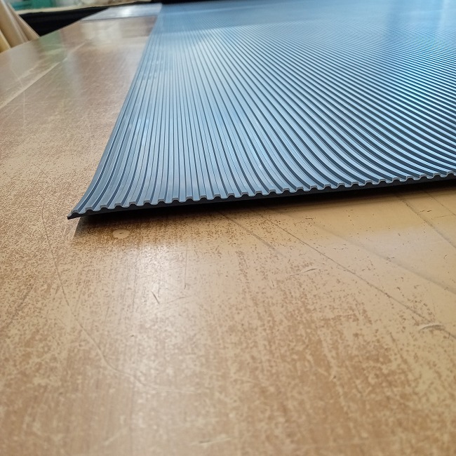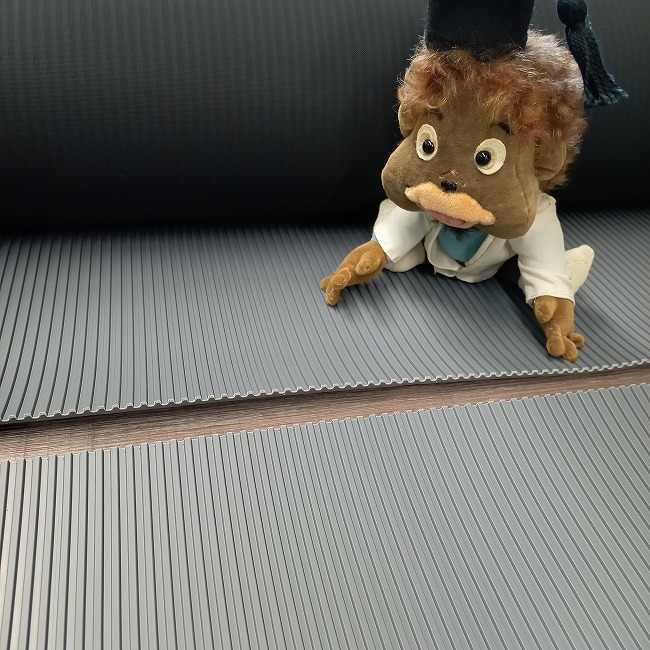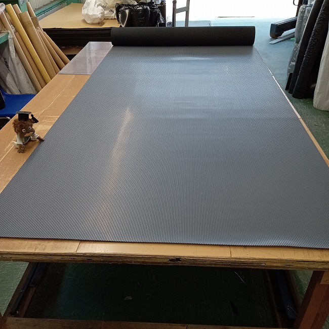エレベーターマットとしてご提案しているのが、筋入りゴムグレー3mmです。こちらの商品でしたら在庫していますので即納可能です。(レギュラー商品に比べ在庫量は少ないです)