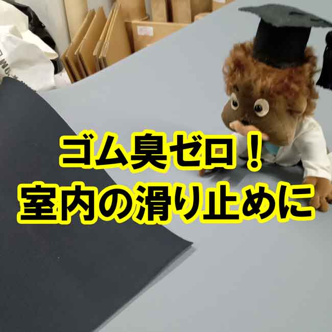 ゴムはゴム特有の臭いがします。材質や商品によって臭いの種類は異なりますが、カーショップのタイヤ売場、ホームセンターのゴム売場などの臭いはイメージが近いと思います。これを敬遠される方が多くいらっしゃるのは事実です。本日の記事はゴムの臭いがほぼゼロのゴムシートのご紹介です。