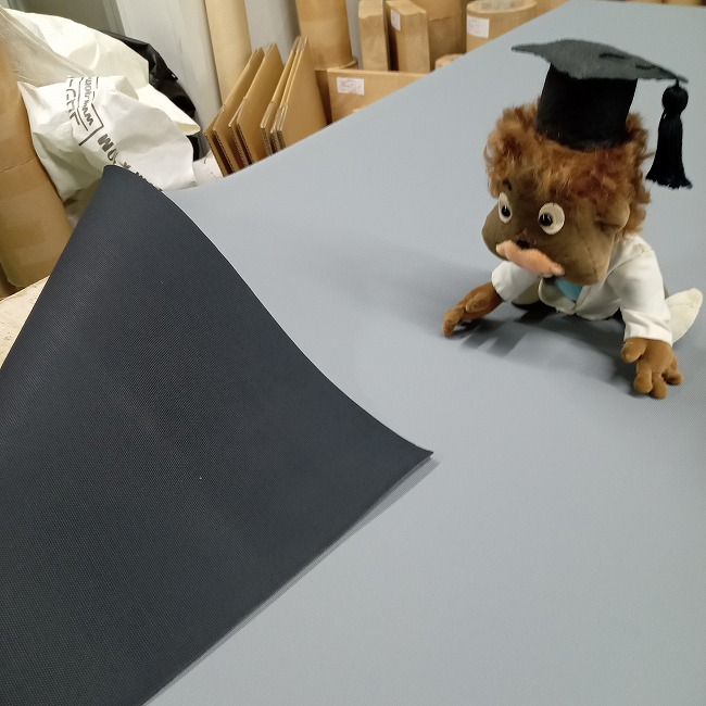 合成ゴム両面エンボスです。ゴムの臭いがまったくゼロとは言い切れませんが、鼻を近づけて臭ってもイヤな臭いはしません(個人差があります)。そのため、上記でご紹介したような使い方でも臭いを気にしなくて良いのです。