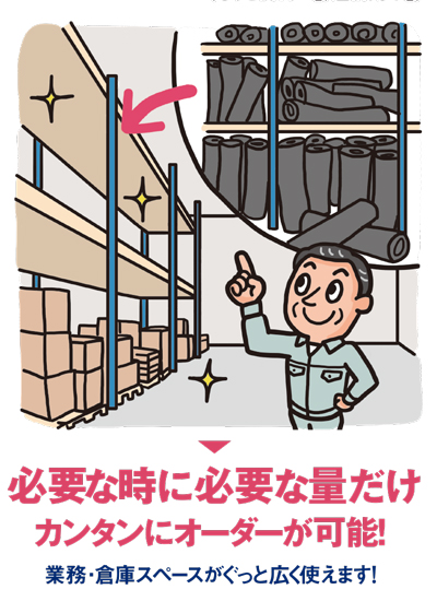 お客様はすでに大きな倉庫にゴムマットを在庫されていることでしょう。