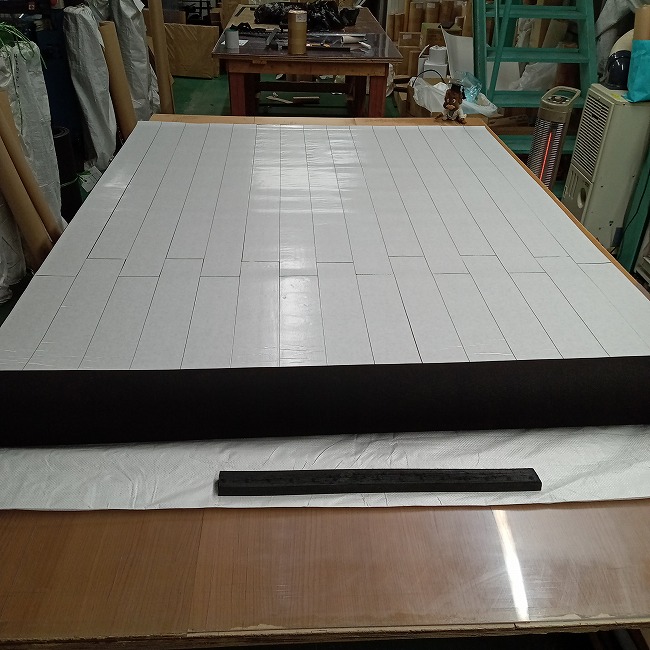 大きなゴムシート全面に両面テープを貼る