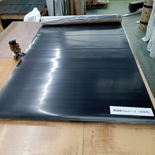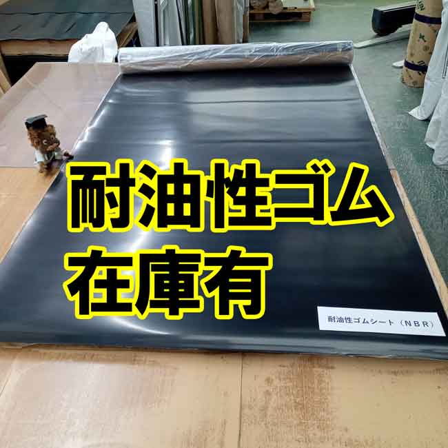 耐油性ゴム(NBR)の在庫があります。在庫の厚みは1,2,3,5,10mmに限定されますが、在庫品については当日出荷や当日のお引き取りも可能です。機械油が付着する部分のパッキン材など、耐油性を必要とする場所でのご用途におススメです。
