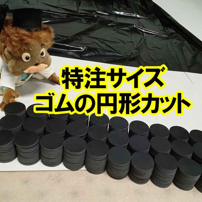 ゴムシート.comで円形にカットして納品することができます。円形のゴムをお使いになることが決まっていましたら、お任せいたただく方が手間いらずで便利です。ただし、角形よりも単価が上がりますのでまずは御見積りを見ていただいてご検討をお願いします。