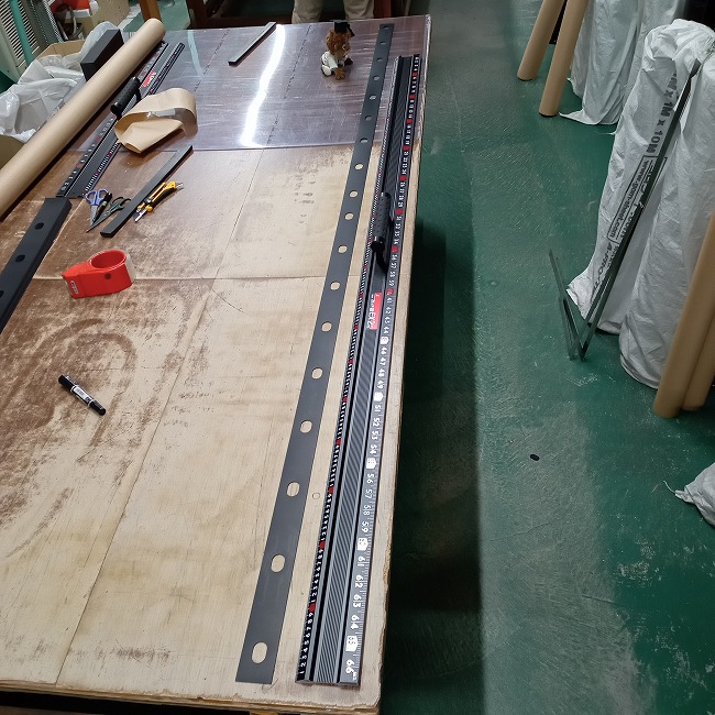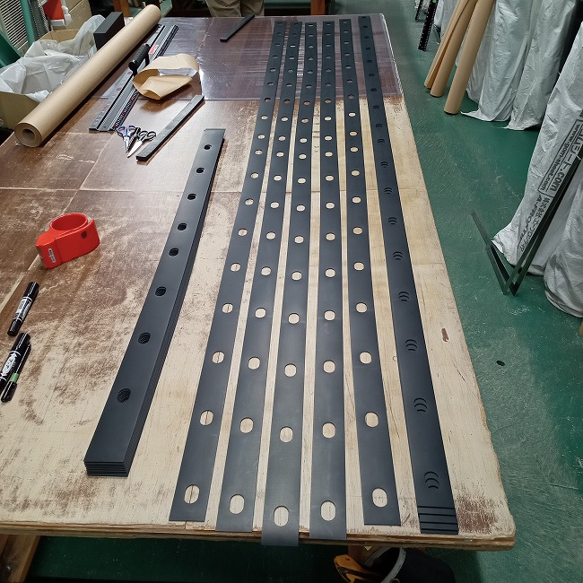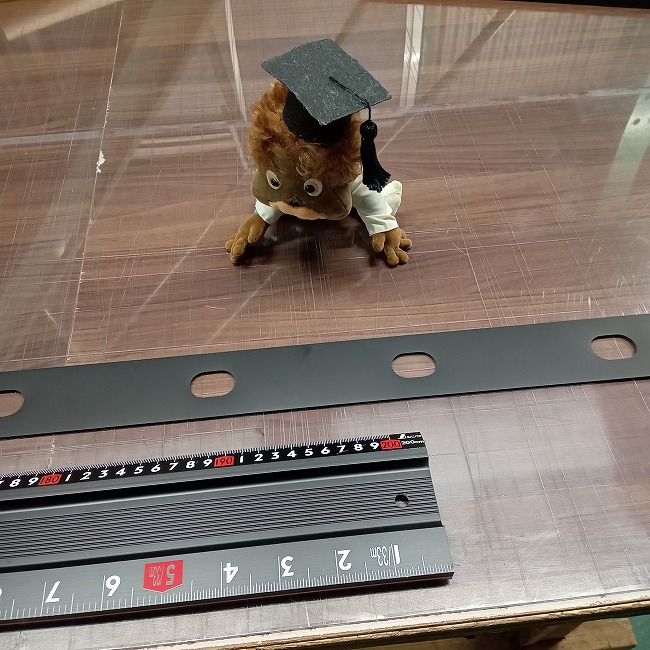 ▼ このように長尺のゴムにたくさんの長孔をあけています。(2Mの定規より長いです)