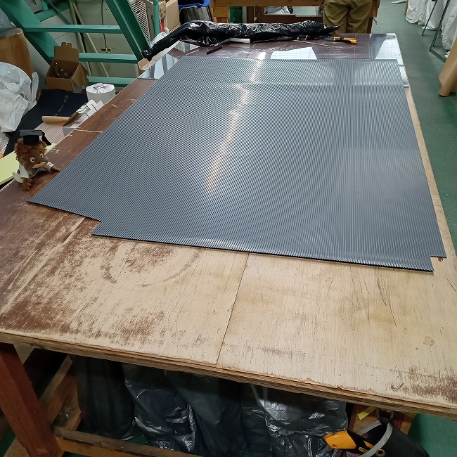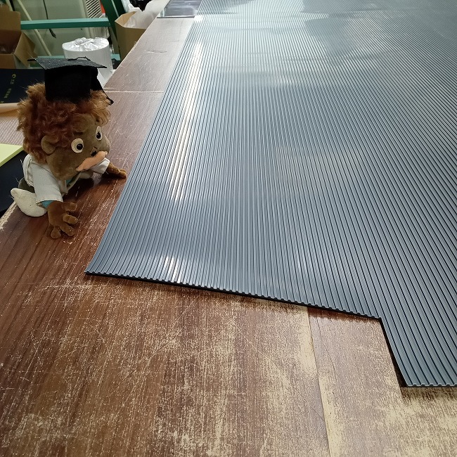 エレベーター内にはゴムだけではなく様々なマットが敷かれています。私たちはゴムシート専門店ですのでゴムのエレベーターマットをご提案しています。カゴ内は単純な長方形ではありませんので、ピタリとおさまるようにカットしてお届けできます。