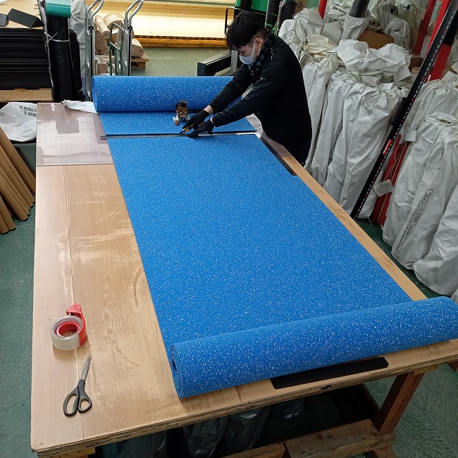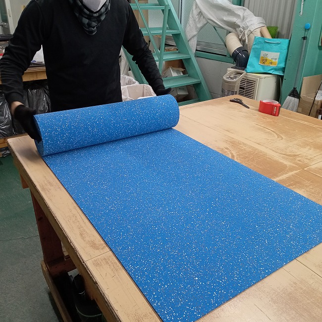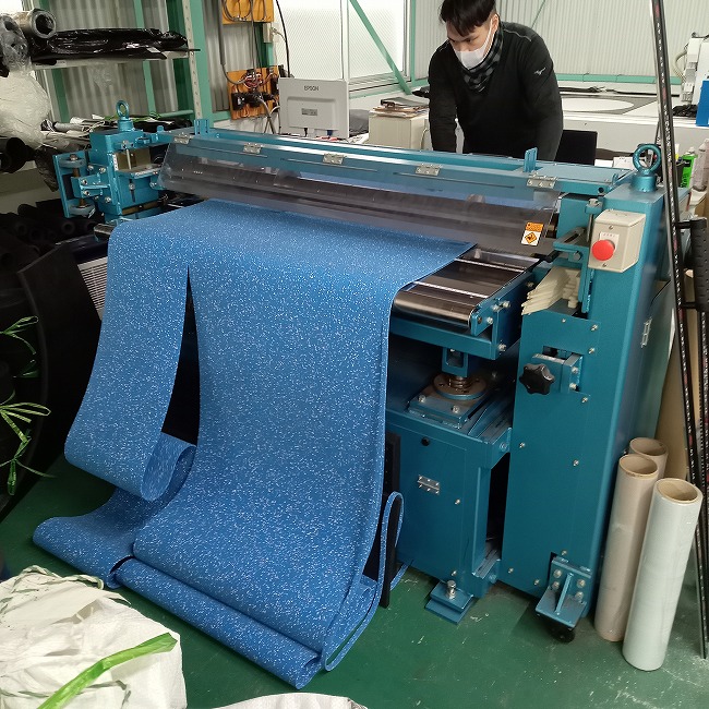 ▼ 青一色ではなく青以外のゴムチップも固めたシートになっております。