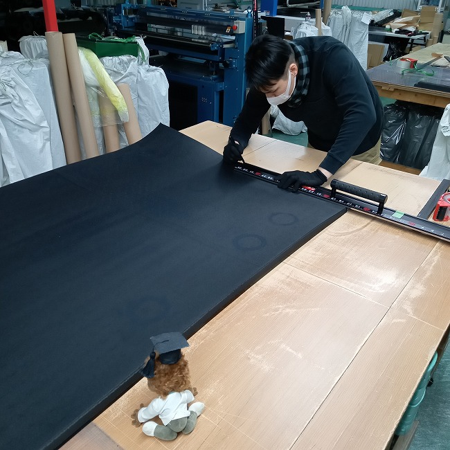 ▼ カットするためにまずは作業台の上で広げます。