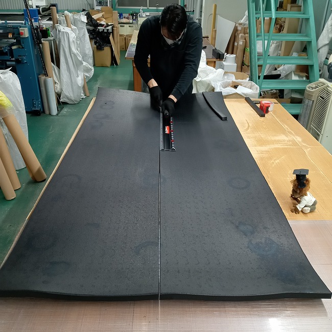 ▼ 厚み20mmありますので、お客様が現場でカットされるのはかなりの時間と労力が必要です。
