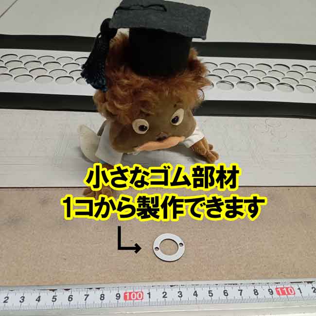 小さなゴム部材(主にパッキンなどのシール材)は1枚から製作可能です。とりあえず、お急ぎで1枚だけ必要というご依頼も多くいただきます。ただ、1枚だとどうしても割高になりますし、急ぎの工事中にゴムが欠損してしまうなどのトラブルがあると大変ですので、予備として数枚のご注文をいただく方が安心かもしれませんね。