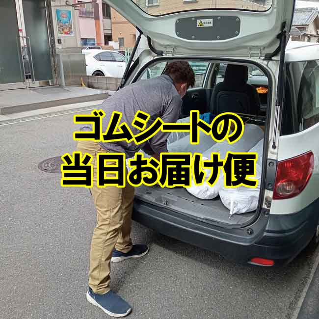 タイトルの「ゴムシートの当日お届け便」は通常サービスとしてご用意はありません。様々な条件が合わさって、自社便で配達することがあり、それがたまたまご注文当日の配達になった、ということなのです。ですので、ご希望があるので「はい、まいります」とはなりませんので、ごめんなさい。