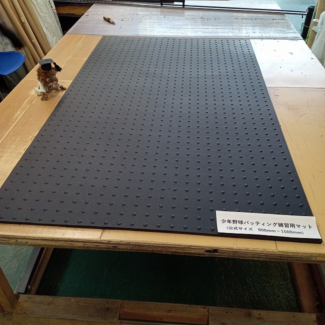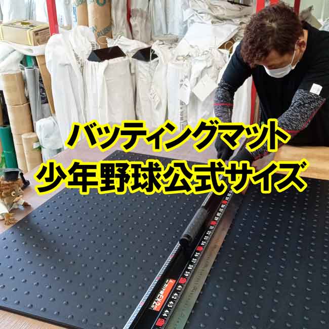 どこでもバッティングの練習ができるバッティングマットが好評ですが、少年野球のバッターボックス公式サイズの900×1500サイズが特に好評です。ご自宅用に1枚からご注文していただけます。