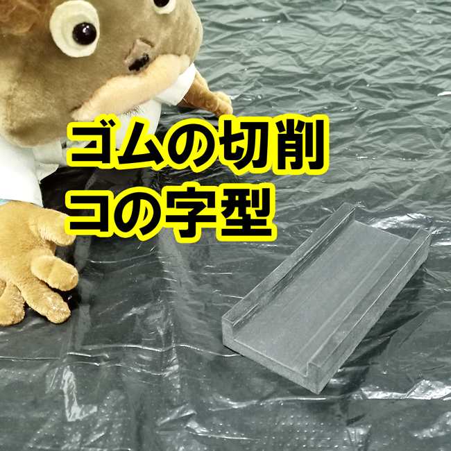 ゴムの切削もやっています。今回の記事ではコの字型の加工事例です。ゴムシート.comでは主に「切る」ことを専門にお仕事をいただいていますが、「削る」ことも可能です。切ることに比べて単価は大きく上がりますが、ご指定の形状に仕上げることができます。(複雑、難解な場合はできないこともあります)