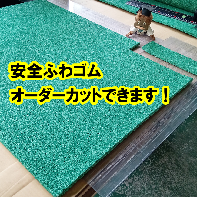 幼稚園、保育園、こども園などお子様を預かっておられる施設様で安全ふわゴムが人気です。ただ、現場でカットされるのが「非常に大変だった」のお声をいただくことがあります。カットする場所に運ぶのも大変だし、紙のように切れるわけではないので、カットも大変です。ぜひオーダーカットもご依頼ください。