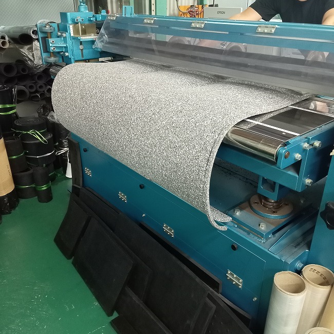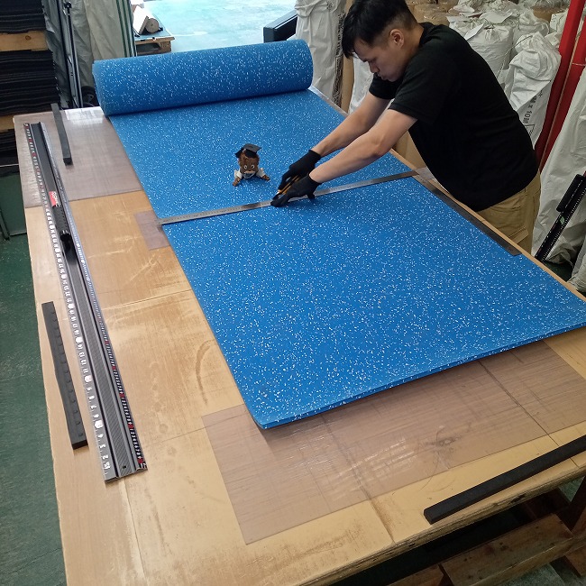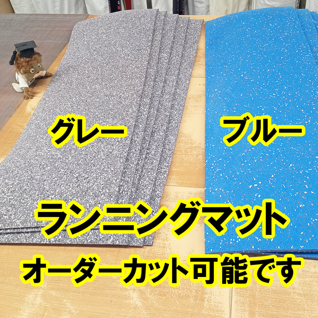 グレーとブルーのランニングマットをランニング用ではなく、カラー区分による目印用としてご依頼いただくこともあります。黒だと目立ちにくいが、グレーとブルーならハッキリして分かりやすいのとカラフルな方が人が集まるところで好まれるからです。