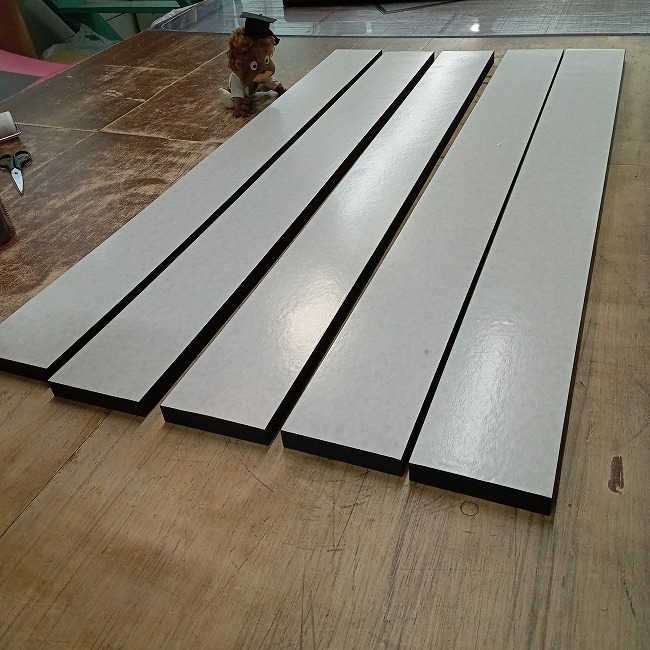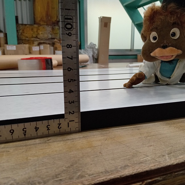 厚物ゴムを寸法カットしてお届けいたしますが、ご用途次第では両面テープがついていると作業がスムーズに進みます。両面テープはあくまで「仮止め」程度でお考えいただきたいのですが、固定力を高めたい場合には強力両面テープを貼り付けて納品することも可能です。
