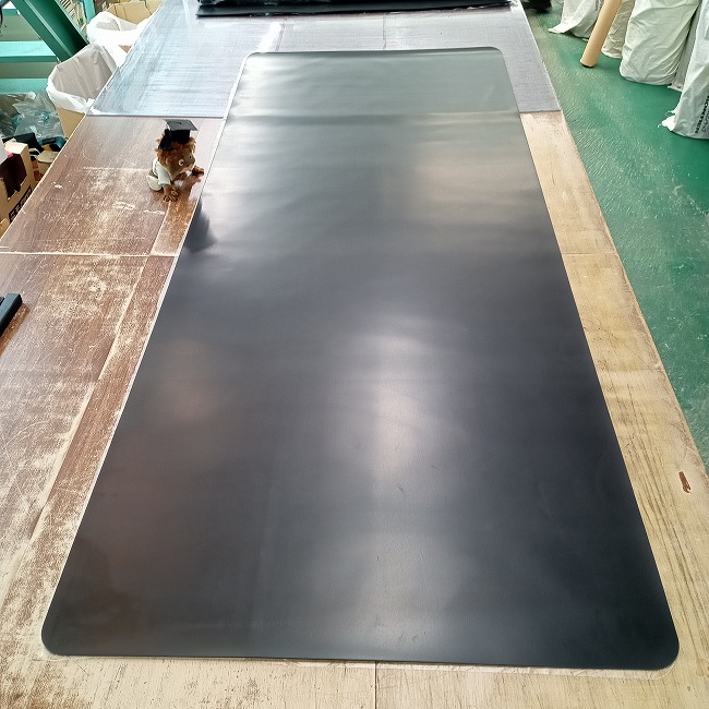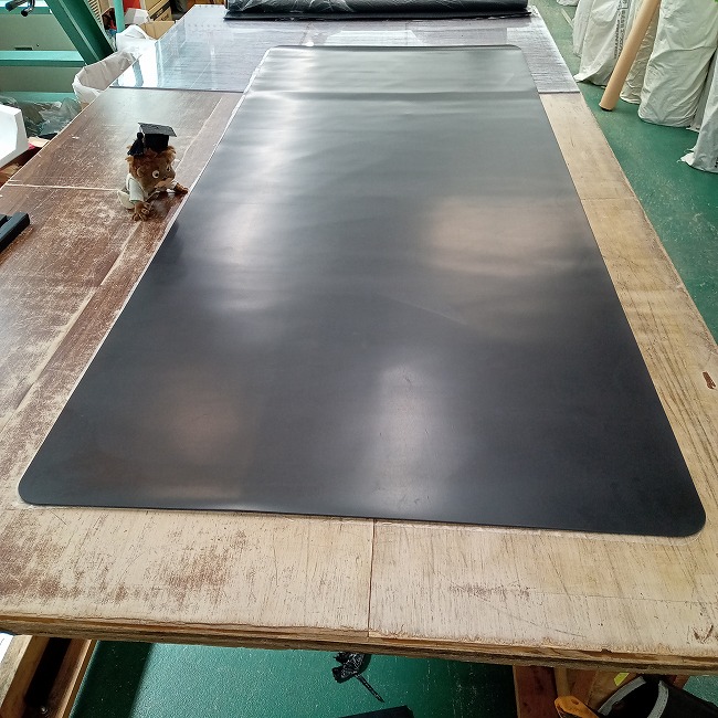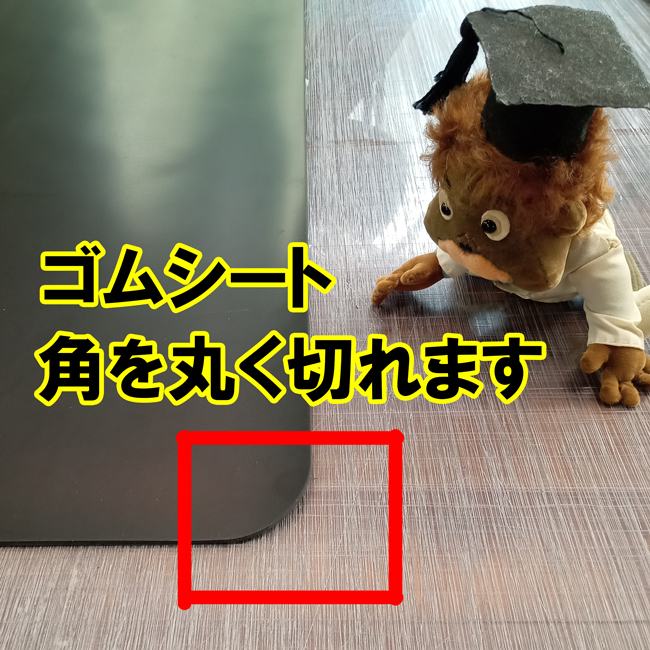 ゴムの角を丸く切ることができます。角の丸い作業台に敷く際にゴムシートの角が丸くないとピタリと揃わないので、設置する場所に合わせた細かなオーダーカットも可能です。特に今回ご紹介するR加工は頻繁にご依頼いただく形状です。