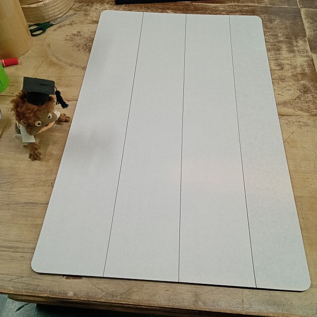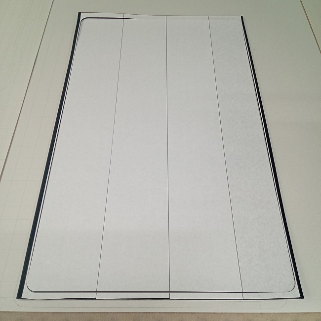 ▽ カット後に製品だけを取り出しました。継ぎ貼りですが、隙間なく全面にピシッとテープが貼り付けられています。