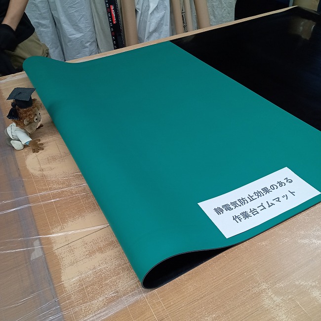 作業台の保護、防音、製品のキズ防止などにゴムを敷いていただくことが多いです。どのようなゴムでも先に挙げた目的は果たせるのですが、使ってみてストレスに感じるところを解消したゴムがゴムシート.comの「静電気防止効果のある作業台ゴムマット」です。
