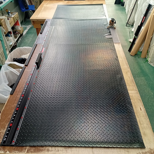 ゴムシートを敷く際、柱などのでっぱりを避けるためには部分的にゴムを切らないといけません。とはいえ、現場できれいに切るのは意外と難しい。そのようなときにはゴムシート.comのオーダーカットをご利用ください。手書きの寸法図をお送りいただければ御見積させていただきます。