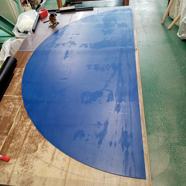 以前から在庫処分品で販売しているブルーのゴムシートですが、残りがわずかになってきました。今日はそのブルーゴムを半円状にカットした事例の紹介です。在庫処分品ですが、オーダーカットも可能です。